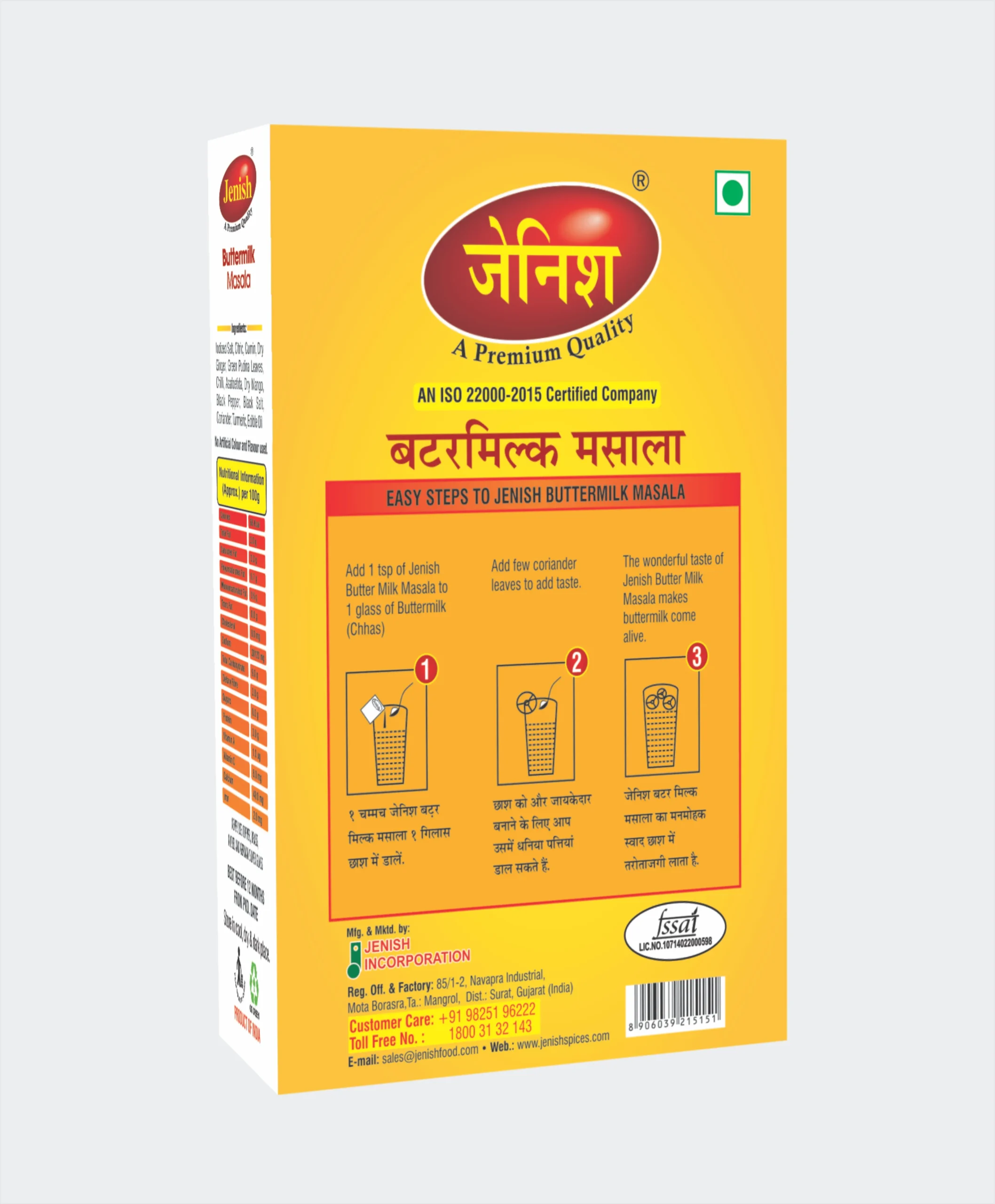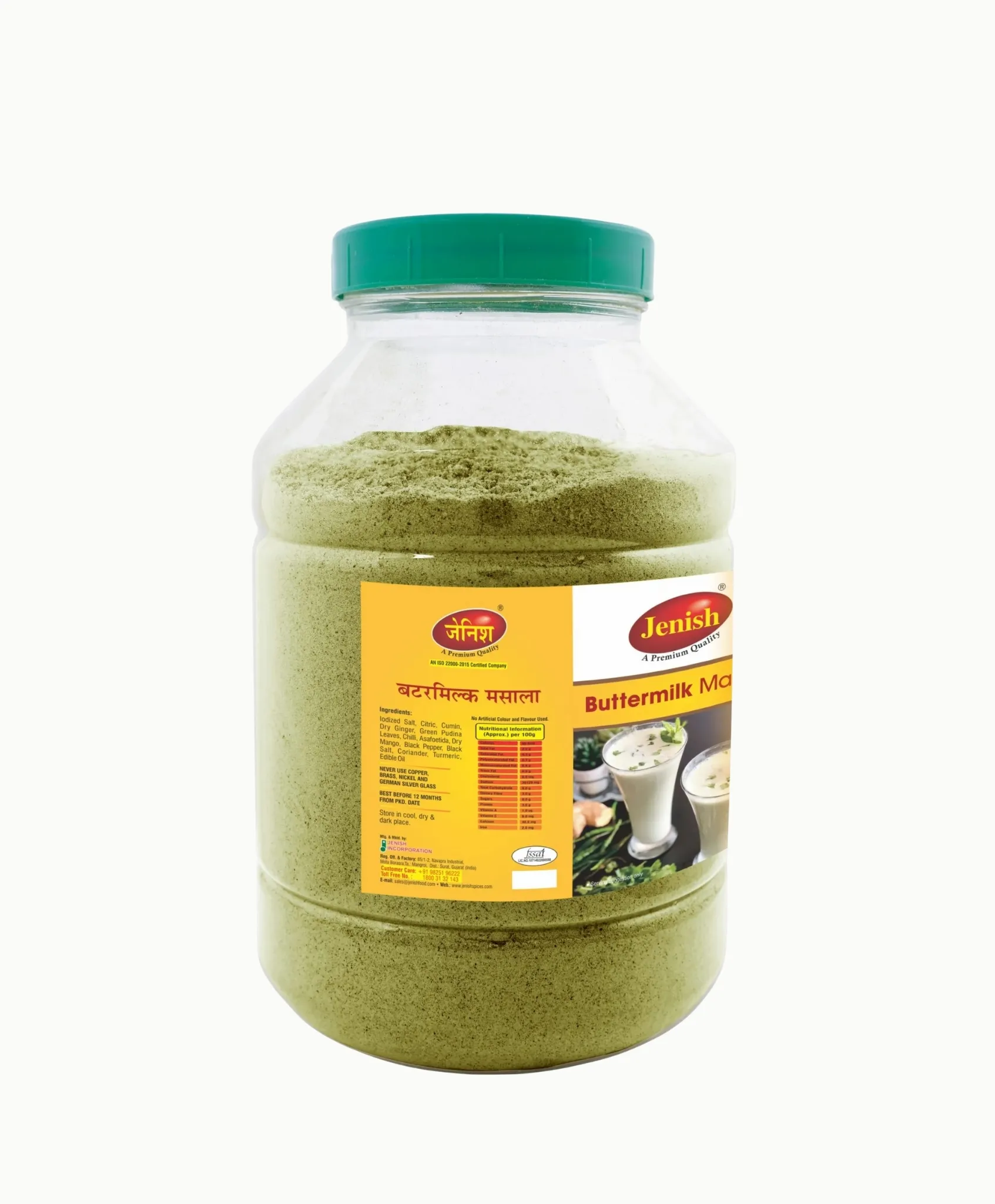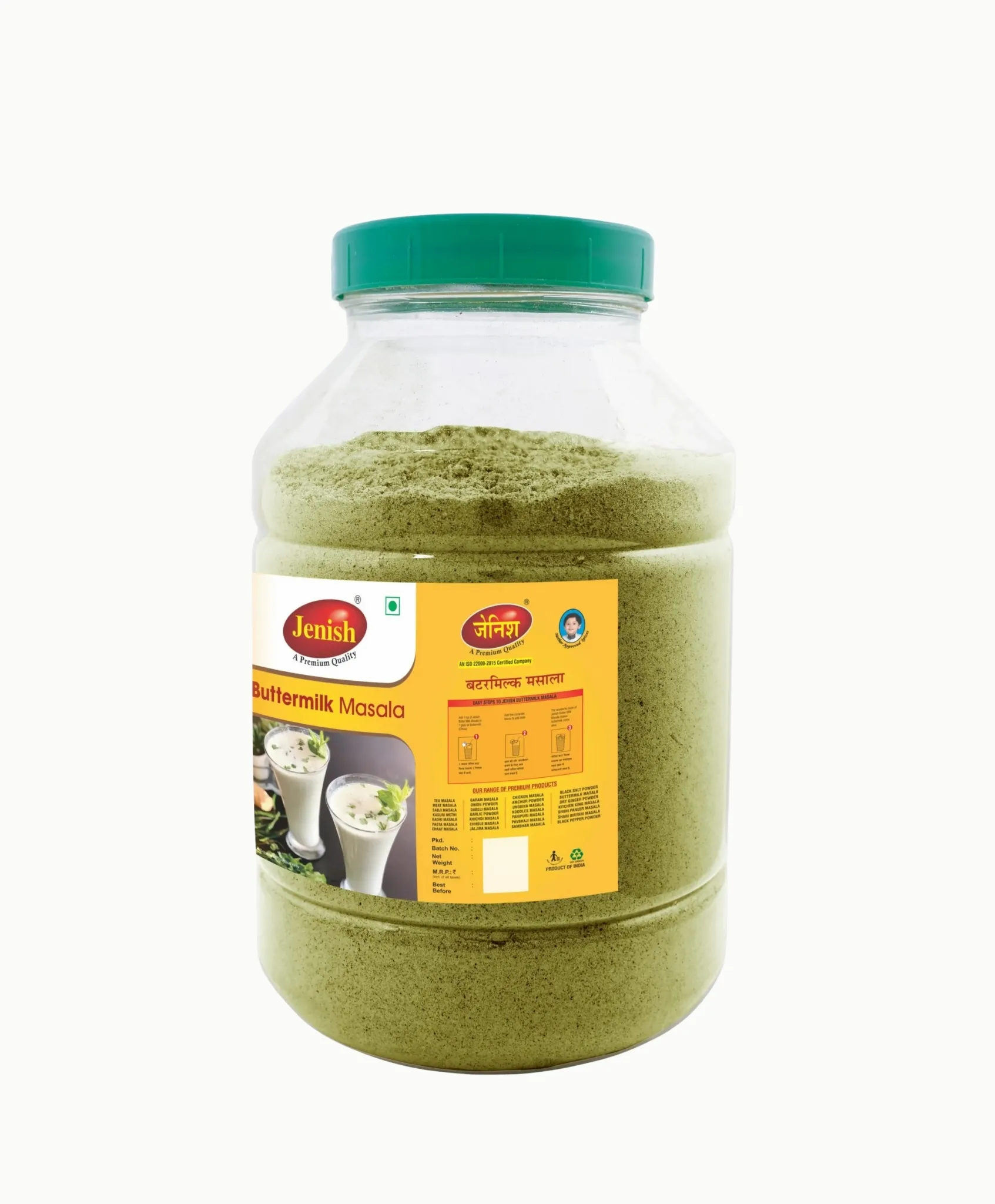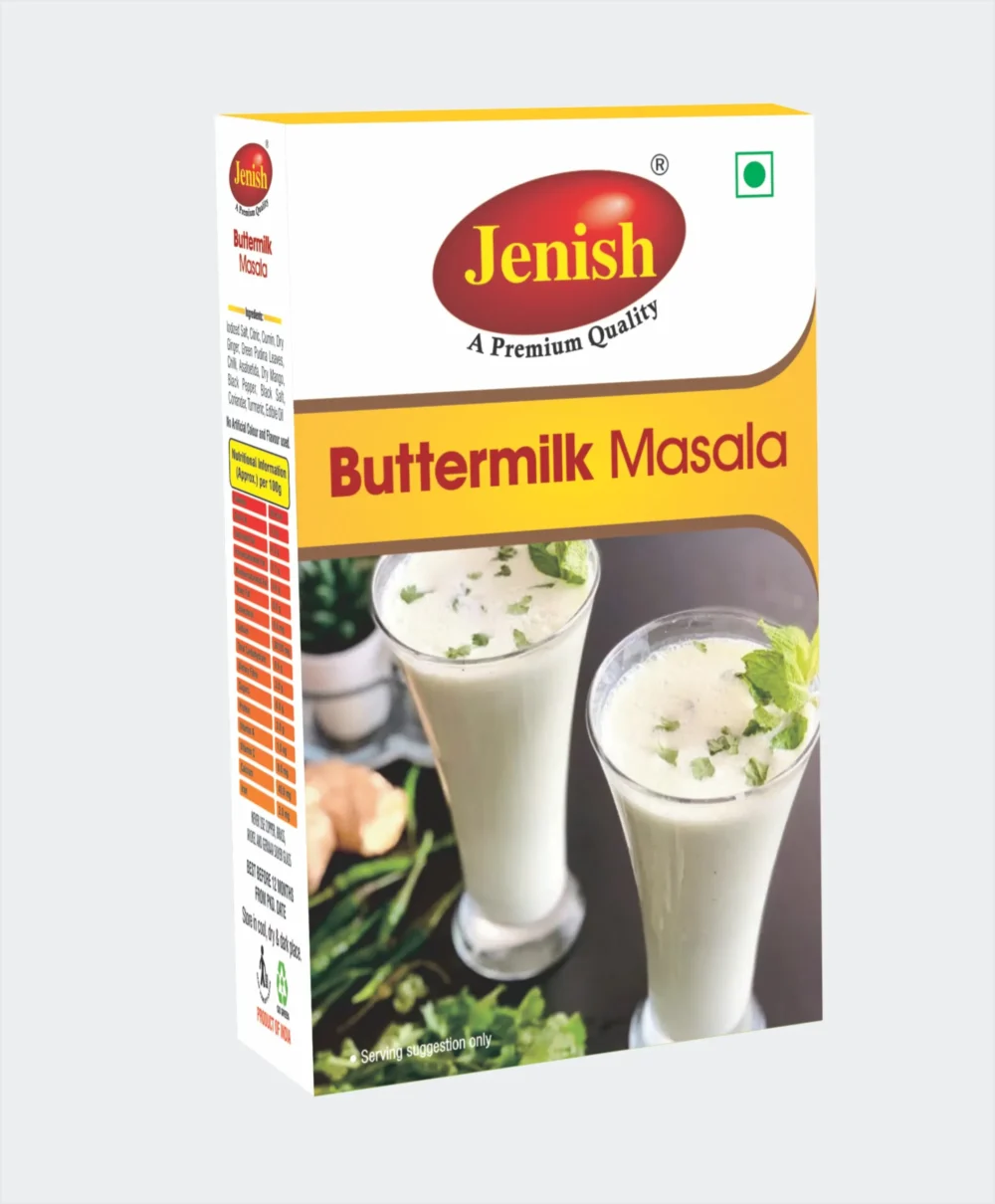 - Jenish Buttermilk Masala – known to make a simple and authentic Masala Chaas. which will make your meal perfectly scrumptious also make a refreshing Chaas, lightly spiced and is the perfect way to cool off anytime anywhere.
