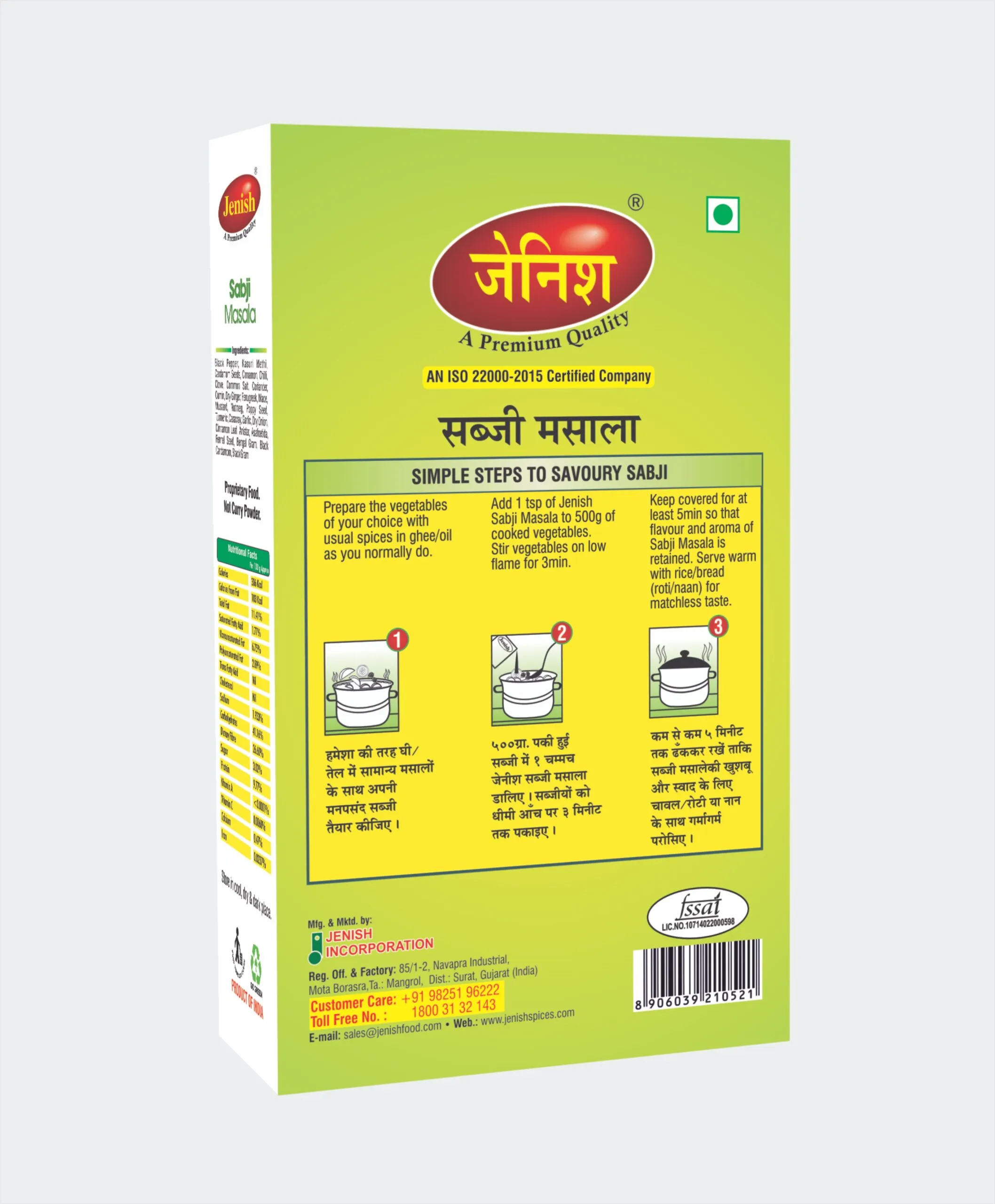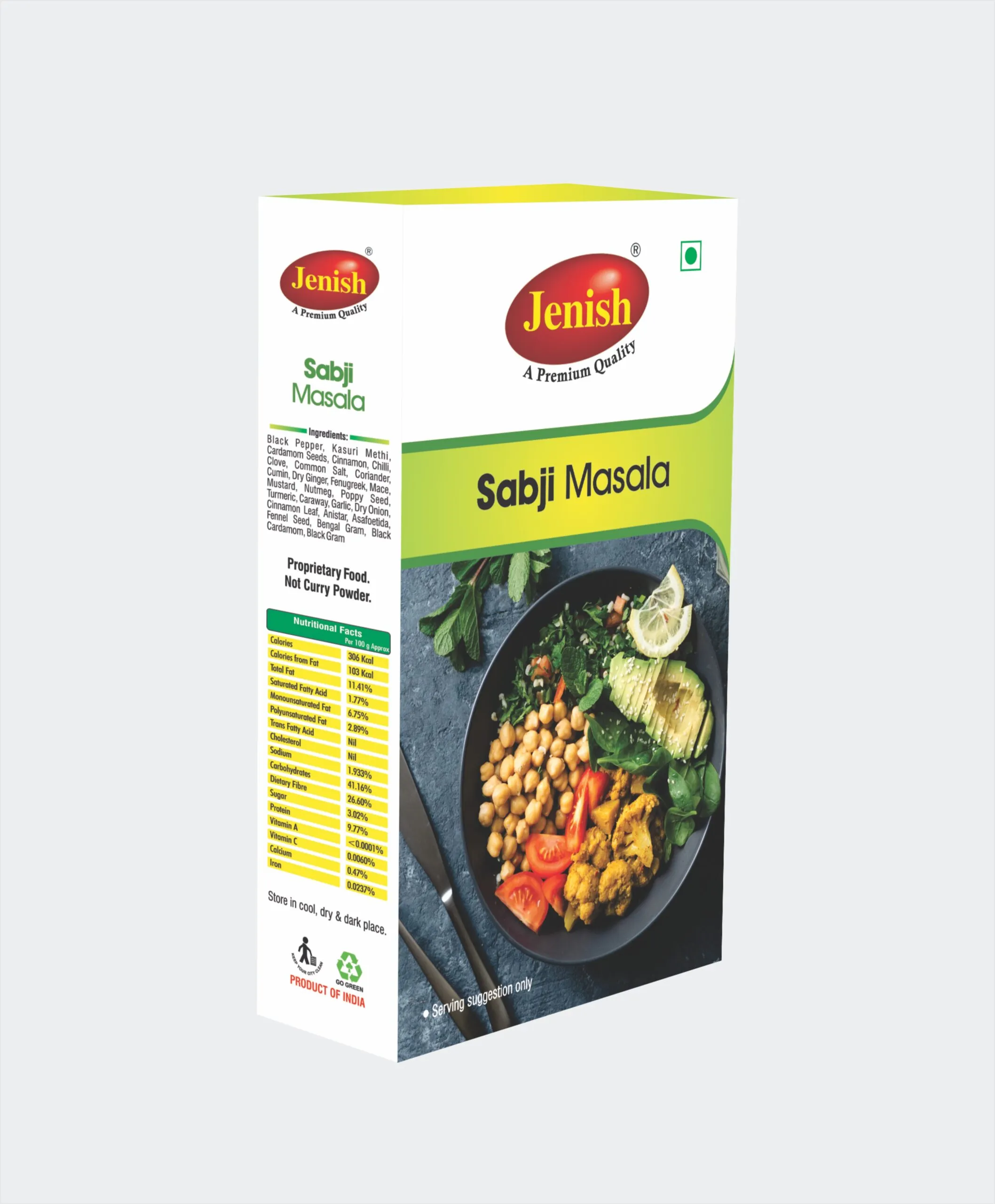 The classic Indian spice is one of the many essentials in every kitchen which is especially combined to enhance the taste of vegetable dishes.Jenish Sabji Masala gives vibrant flavour and appetizing colour that is obtained by mixing of several grinded spices to make every dish delicious. A pinch of this, and your vegetable dish will go stir-crazy with excitement.